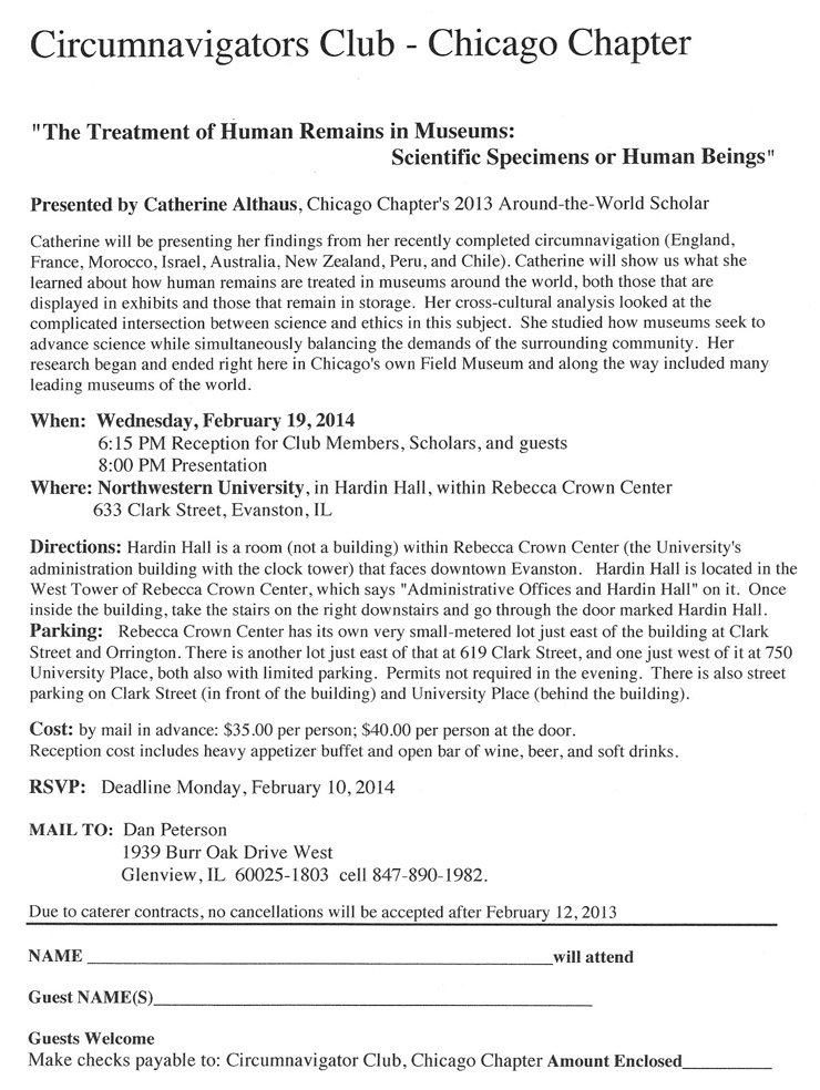 February 19, 2014 "The Treatment of Human Remains in Museums"
