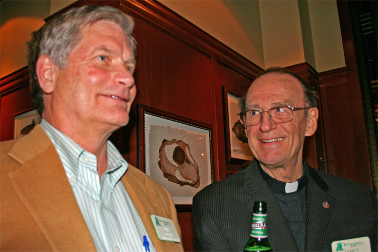 R: Old friends Dave Gotaas and Jim Arimond discuss current events.